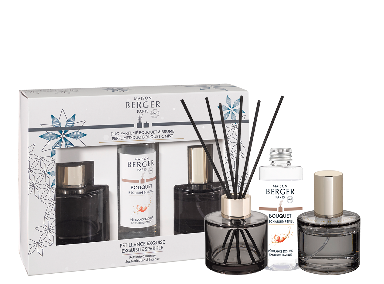 Подарочный набор "Розали" с ароматом-бестселлером "Брызги Шампанского" от бренда Maison Berger Paris состоит из аромадиффузора 90 мл с ивовыми палочками и интерьерных спрей-духов 50 мл.