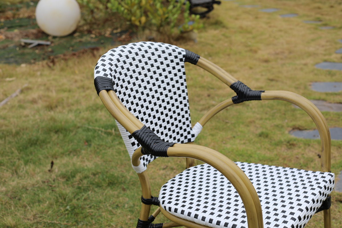 Плетение выполнено вручную из плоского искусственного ротанга 12х1,3 мм. Цвет оплетки - черно-белый.