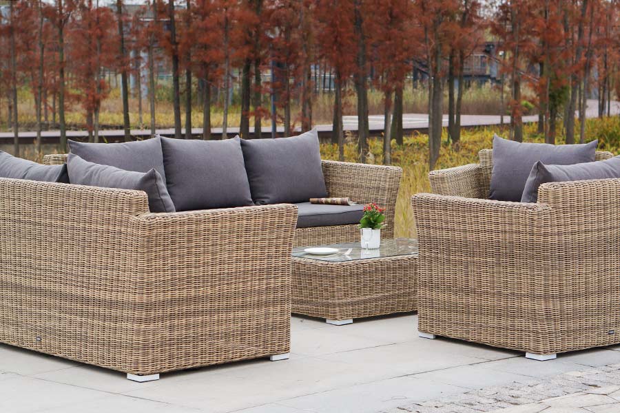 Садовые диваны и кресла поставляются вместе с подушками. Они упакованы в съемные чехлы, которые при необходимости можно стирать. Для их производства берется полиэстер, плотность 230гр/м2. Материал защищен с помощью влагоотталкивающих составов. Цвет подушек – серо-коричневый.