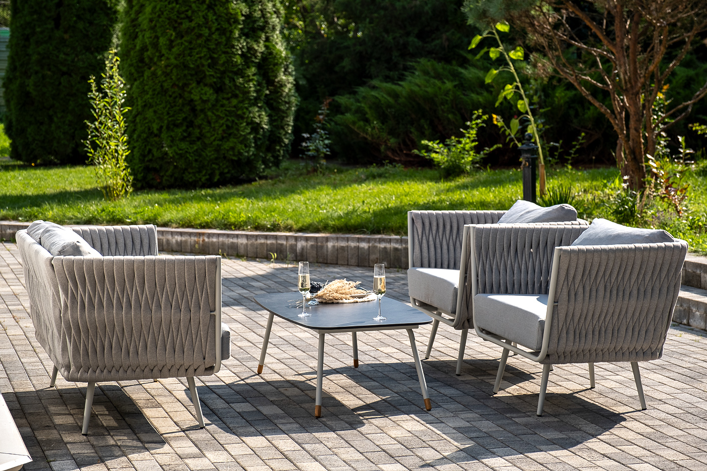 "Монако" лаунж-зона 4-местная из роупа со столом "Верона" (серый гранит), каркас светло-серый, роуп светло-серый