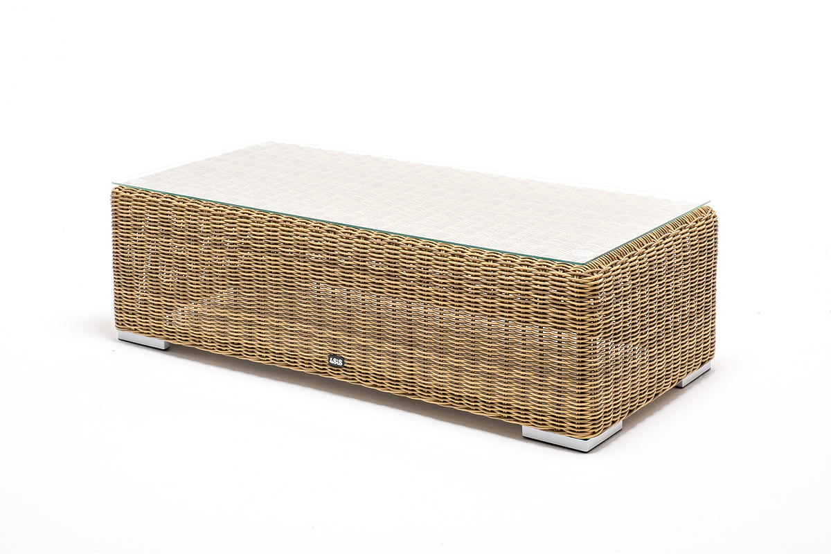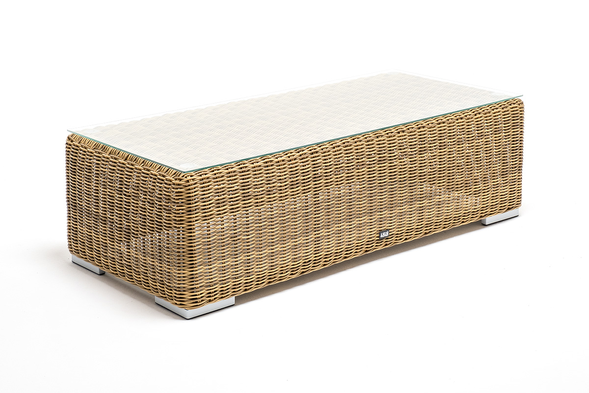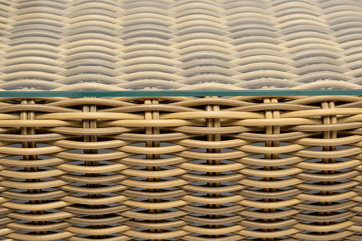 Поверхность плетеного столика представляет столешница из закаленного стекла – 5 мм.